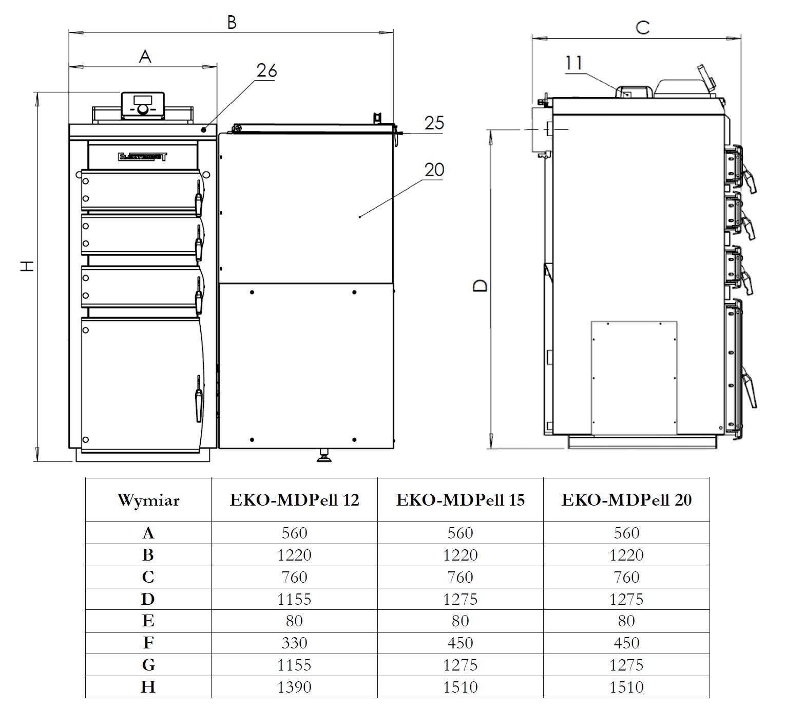 | Parametr | J.m. | EKO-MDPell 12 | EKO-MDPell 15 | EKO-MDPell 20 |